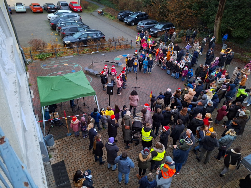 Auch in diesem Jahr wollten wir unser wunderschön gestaltetes Adventsfenster mit einem Fest am 14.12.2023 eröffnen. Ab 13.00 Uhr bauten die ersten fleißigen Helfer Stände, Buden und Dekorationen auf. So konnte Herr Ronge um 15 Uhr mit der Klasse 3b mit vielen weihnachtlichen Liedern musikalisch starten, bis alle begeistert ihre Schlüsselanhänger zum Lied „Kling Glöckchen“ erklingen ließen. Nach der musikalischen Einführung ging es schon zum Rundgang weiter. Nahezu alle Eltern und Kinder machten sich mit Taschenlampen oder Laternen auf den Weg, die beleuchteten Adventsfenster in der Nachbarschaft zu erkunden. Anschließend konnte man sich kulinarisch mit Würstchen, Muffins, Popcorn, Crepes oder einem Kinderpunsch verwöhnen lassen. Man konnte ebenso viele schöne selbstgemachte oder gebastelte Geschenke (z.B. Kerzen, Schlüsselanhänger, Körnerkissen odere Tassen) an den Ständen ergattern oder sich vor einer wunderschön arrangierten Weihnachtskulisse mit Schlitten fotografieren lassen. Alle Jahrgänge hatten etwas vorbereitet. Zum Abschluss konnten noch einmal alle Freiwilligen den „Rekord-Weihnachtstanz“ aufführen und natürlich ihre Tombola-Lose einlösen. Ab 18 Uhr löste sich das Fest langsam auf und das Aufräumen begann.