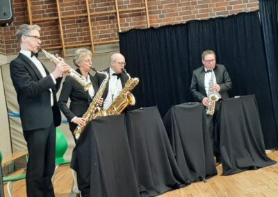 „Außerordentlich“ war nicht nur, dass wir zusätzlich zu unserem traditionellen Puppentheater noch ein Theaterstück genießen durften. „Außerordentlich“ war auch das Theaterstück selbst. „Außerordentlich“ war zudem, dass dieses Theaterstück gesponsert wurde und „außerordentlich“ war auch der musikalische Einsatz eines Saxophon-Quartetts (Sopransaxophon: Thorsten Floth, Altsaxophon: Guido Grospietsch, Anja Heix: Tenorsaxophon, Matthias Schröder: Baritonsaxophon).