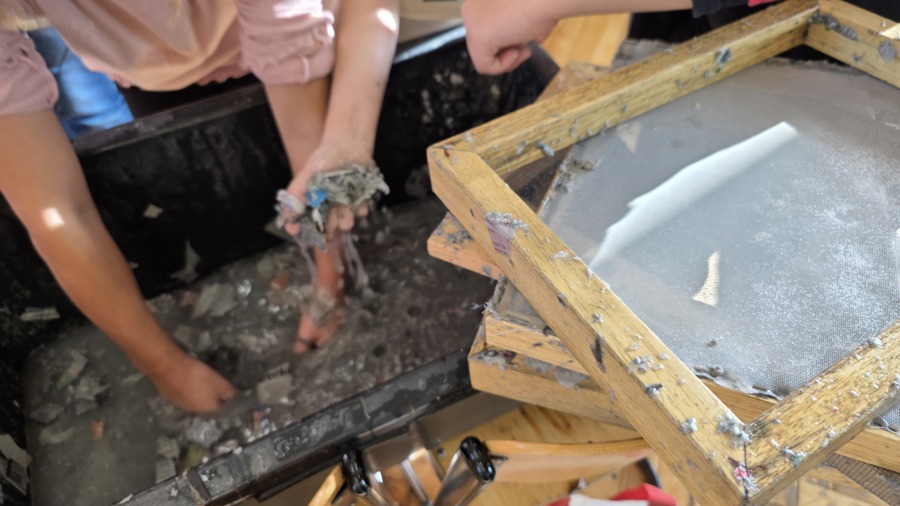 Am 30.10.25 durften die Kinder der dritten Klassen eine tolle Erfahrung machen. Aus Altpapierschnipseln und Servietten wurde neues Papier geschöpft. Das war eine spannende Erfahrung und pssst… das schöne Papier ist auch ein tolles Weihnachtsgeschenk für die Eltern.