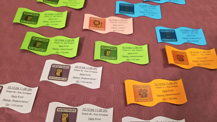 Auch in diesem Jahr haben wir am 19.09.25 wieder die Türen geöffnet für alle interessierten Familien. Jede Klassenleitung hat sich ein Mitmach-Angebot in der Klasse überlegt, an dem die Besucher-Kinder teilnehmen konnten. Am Eingang wurden dafür Tickets ausgelegt. Zudem duftete die ganze Schule nach Waffeln, denn der Förderverein hat wieder lecker gebacken.