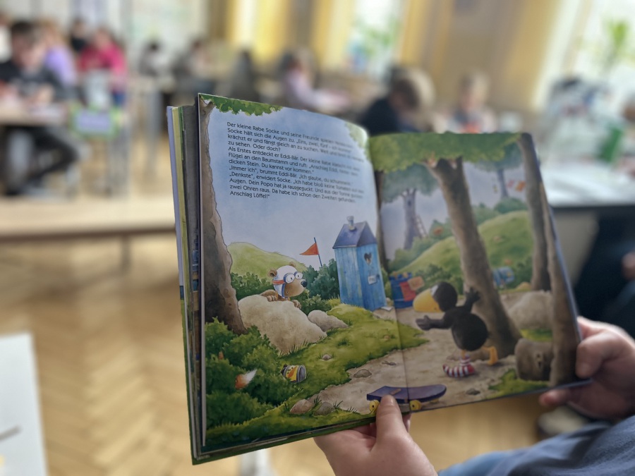 Am 21.11.25 fand an der Grundschule Am Busch wieder der Vorlesetag statt. Diese Mal gab es eine Besonderheit- es wurde in 3 verschiedenen Sprachen gelesen- Deutsch, Englisch und Türkisch. Wie immer konnten die Kinder ihr Buch frei wählen. Die neugierigen Zuhörer wussten jedoch nicht, wer das Buch vorlesen wird. Das war bis zu dem Tag ein Geheimnis. Im Anschluss an die Vorlesezeit, durften die Kinder noch kreative Aufgaben zu den Geschichten lösen. Der Vorlesetag war wieder ein voller Erfolg.