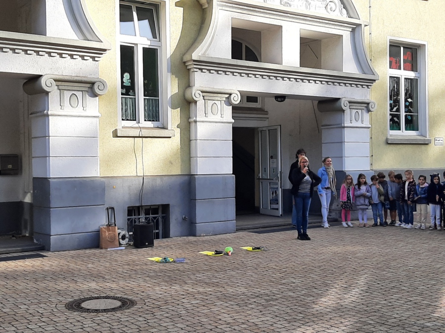 Zusätzlich wurde das „Zu Fuß zur Schule“ – Lied eingeübt, das sich mittlerweile zu einem Ohrwurm entwickelt hat.