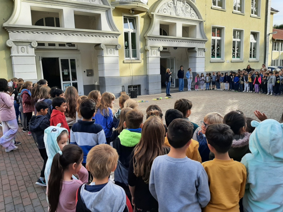 Morgens erhielten die Kinder Stempel für die erlaufenen Wege, die sie bis zum Ende der Woche fleißig sammelten. In einer anschließenden Siegerehrung am 25.09.2023 auf dem Schulhof wurden die Klassen geehrt, die die ersten drei Plätze belegten.